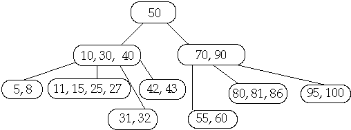 - A node in T has t-1 <= K <= 2t-1 keys in sorted order.